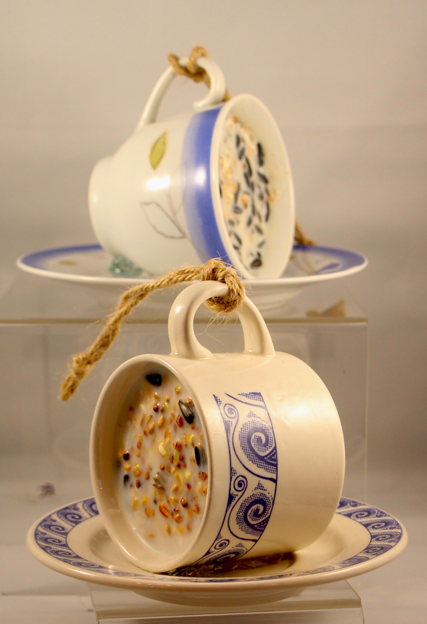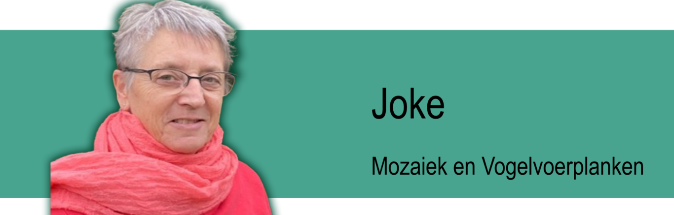 Zo lang als mijn handen dit toelaten, blijf ik Mozaïeken en Theepotplanken voor de vogels maken met hulp van mijn handige man Jack.