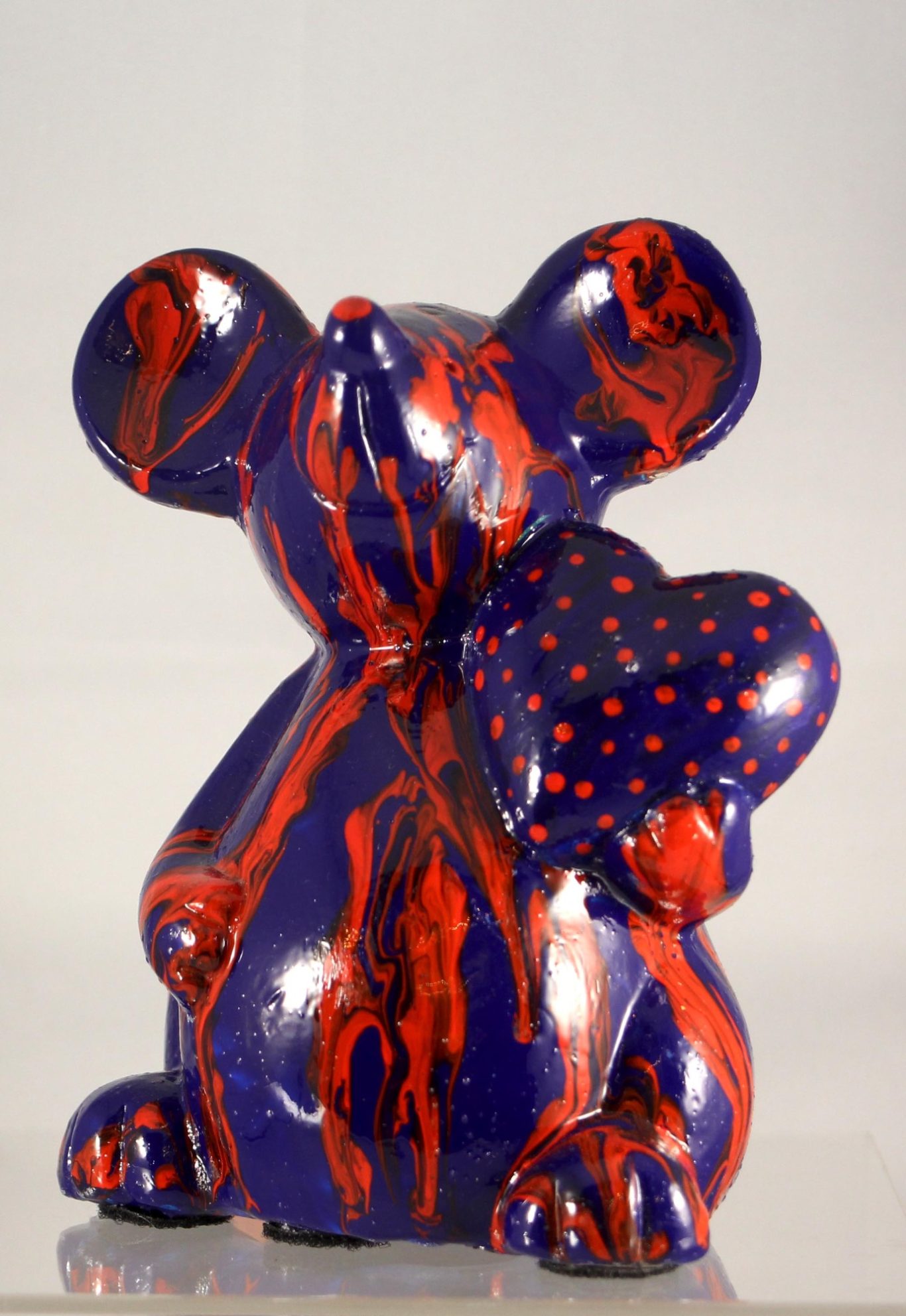 Doordat ik de verf over de voorwerpen giet is het resultaat telkens weer onvoorspelbaar, verrassend en uniek.