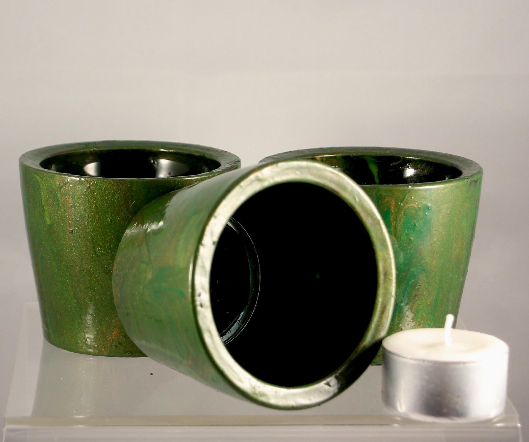 Lisette verkoopt bij Grutz allerhande voorwerpen (Kandelaars, Schalen, Vazen, Kommetjes etc.) die ze met Acrylverf bewerkt. Alle objecten die ze gebruikt komen uit kringloopwinkels en hebben al een leven achter de rug.
