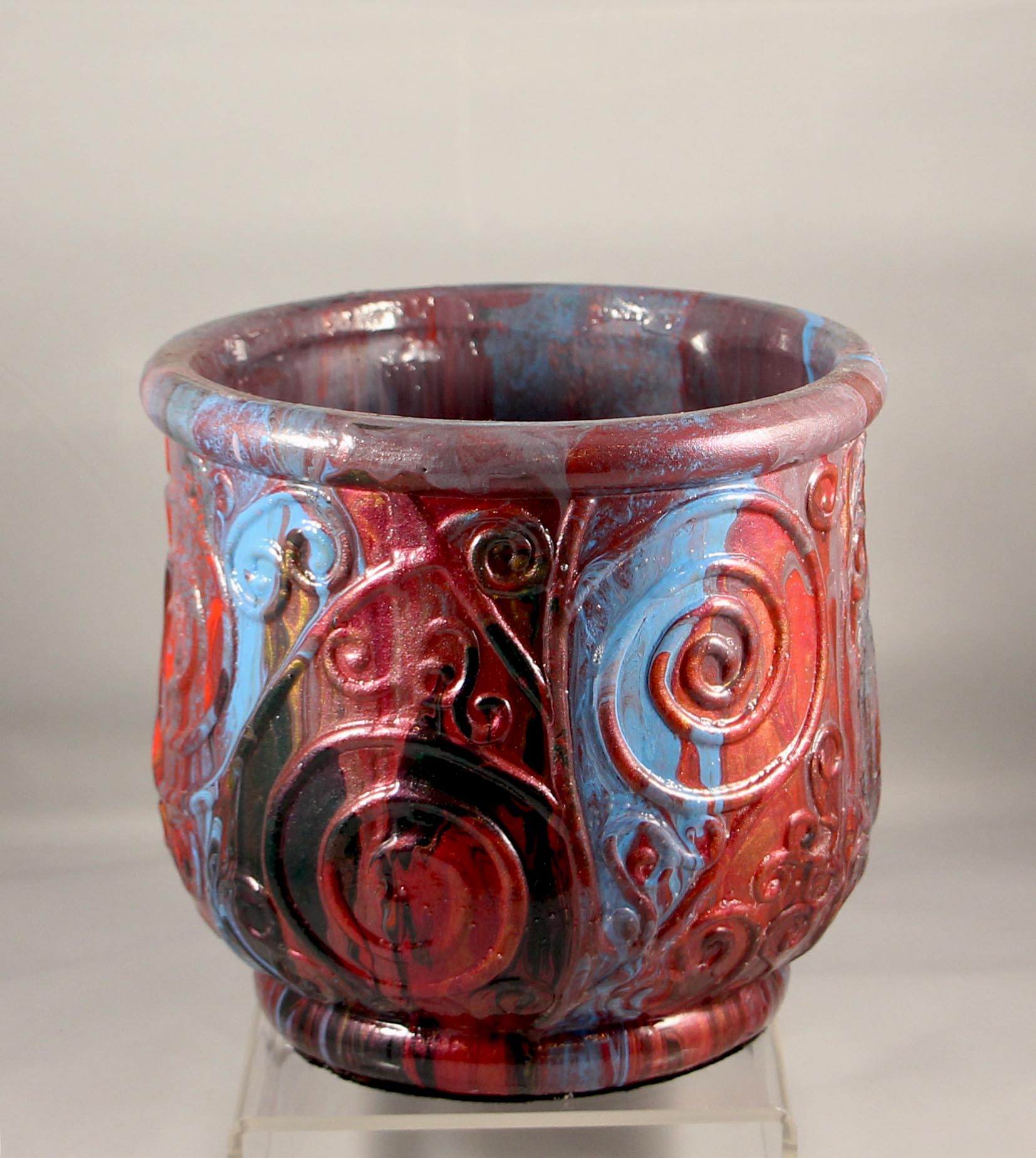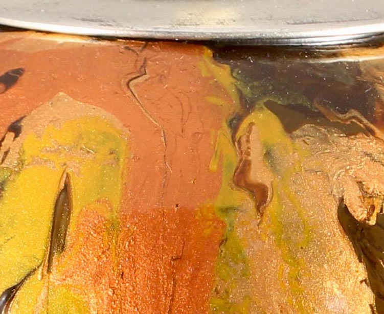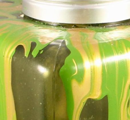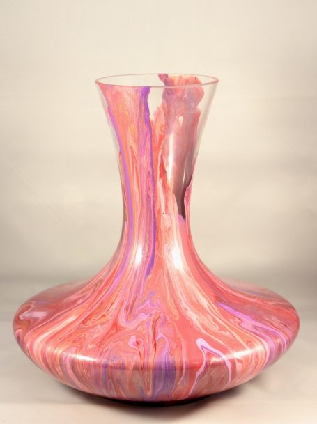Doordat ze de verf over de voorwerpen giet is het resultaat telkens weer onvoorspelbaar, verrassend en uniek.