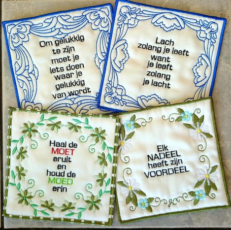 Henny verkoopt in onze winkel allerhande geborduurde artikelen zoals Kraampakketjes, Slabbetjes, Gastendoekjes, Etuitjes en nog veel meer. Vooral haar Beschermengeltjes doen hun werk heel goed!
